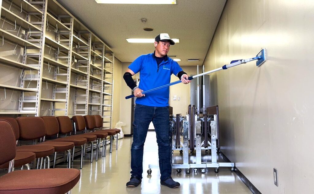 1. 強アルカリ薬剤による壁・天井の洗浄で、付着起因物質を除去する